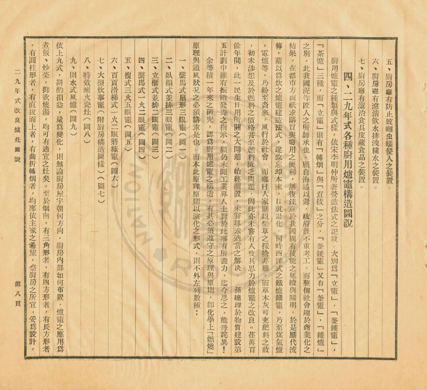 总理于民生主义讲演词中云:「民生第一个问题,便是吃饭问题。」又于物质建设第五计划中云;『厨用燃料,在中国为日用所必需,最贫乏乡村之人,每年费工十分之一以采集柴薪;城市之人,买柴薪之费,占其生活费十之二;故柴薪为国民最大耗费。今当使乡村中以煤炭代柴草,城市用煤气或电力,然欲用煤炭,煤汽,电力,皆须有特别设备,卽设置制造煤汽,电力,火炉诸工塲。 』此皆从国民经济方面着眼,从国民个人利益立言者也。如使一国之内,原有森林砍伐以尽:新植苗木,不能成林;则不但家室器用,无所取材;水旱风沙之害,亦将与日俱增;前途祸患,何堪设想!此又历年以来政府所以推行造林运动之至意。曩时管子所以特标:「山林救于火,草木植成。」为国富第一事之初旨也。 ——余对于厨用燃料之节约,与厨房炉流之改良,自民国二十三年开始为初步之探求。以当时温州市上木柴价格每元三百斤,社会人士不甚了解燃料节约问题之重要性,故虽言之数数,而同情者寡。而杭州各地通都大邑,则渐有采用电力火炉之趋势;同时广东式之铁懂,价既不昂,柴亦甚省,都市家庭,乐于采用;因此余之研究,仅将永嘉民间所用之砻糠略事改良,俾可兼燃木柴而止,在余家庭应用此,虽获节省时间与省木柴之益,但余对于炉之构造与应用,无论就燃烧原理方面,抑或就外形构造方面,尚无澈底之认也……