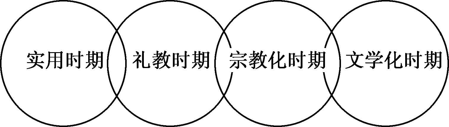 此四时期之画分,并非绝对,其间互有出入,大抵就与绘画之进展或直接或间接发生影响及效力而比较重要者而言,则“实用”、“礼教”、“宗教”、“文学”四者,实各有独占一时期之势力焉。更进一步言:第一期之后半,实际应用中,当然包含礼教化。第二期虽其表面仍属实用,实则全然为礼教化,且间呈宗教化之色彩。第三期无论绘画之应用及意义,一受宗教支配,而其作风,且渐启文学化之萌芽。第四期纯为文学化,实用、礼教、宗教化之绘画,仅占极小之部分而已。至于魏晋之庄老,宋元明之理学,清代之汉学,对于当时绘画,亦各有潜移默化之势力,则不俟论也。