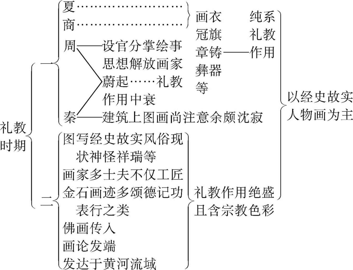 汉以先,对于图画艺术上之评论,惟齐王容易鬼魅而难犬马之对。至汉,研究图画者日多,而艺术上评论,则亦罕闻。刘安之言曰:“寻常之外,画者谨毛而失貌。”高诱注曰:“谨悉微毛,留意于小,则失其大貌。”张衡之言曰:“画工恶图犬马而好作鬼魅,诚以实事难形,而虚伪不穷也。”或谓二子之言不过取喻于画,非绝对的用艺术上之眼光相评论。然于画图之学理固甚有合也。夫汉代绘画之应用,既含礼教化,而偏于人事之实际;赏鉴之风未开,审美之力殊浅,故论画著作,绝少流传;然较之往代,已稍见曙光。刘、张所论,以其质量言,都无足奇;然在史家以时代眼光观之,则以为论画之发端,甚有记述之必要也。