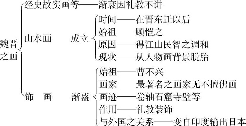 以上论画诸家,皆系晋人,知三国时论画之风,尚甚沈寂,无异汉代。晋人论画,如王廙所言,似专指学养方面;顾恺之所言,则能兼顾学养艺术,以慎重之态度,下精审之评语矣。惟其论评,主重人物,于山水则隐约及之。