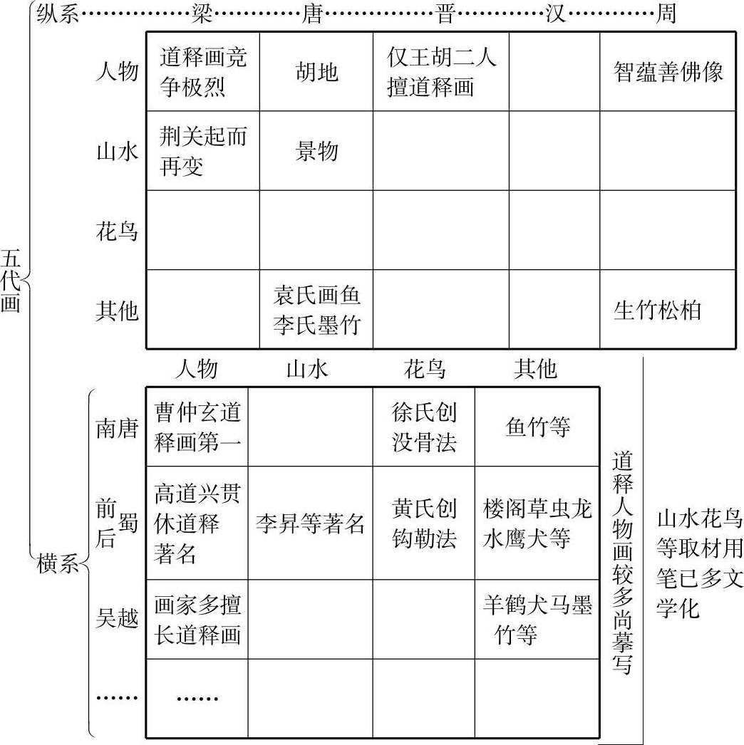 唐人论画,无论关于理法方面,鉴藏方面,皆有精到之说,而张氏彦远,发明最多。五代画家,争角极烈,画学有得,每自深秘。钟隐服役于郭乾晖,始得亲其指授,则当时画家气矜量狭之习可见。此等气矜量狭之画家,无论其学是否高明,即高明矣,以自秘故,卒至失传。惟荆浩著有《画说》、《笔法记》、《山水诀》各一篇。